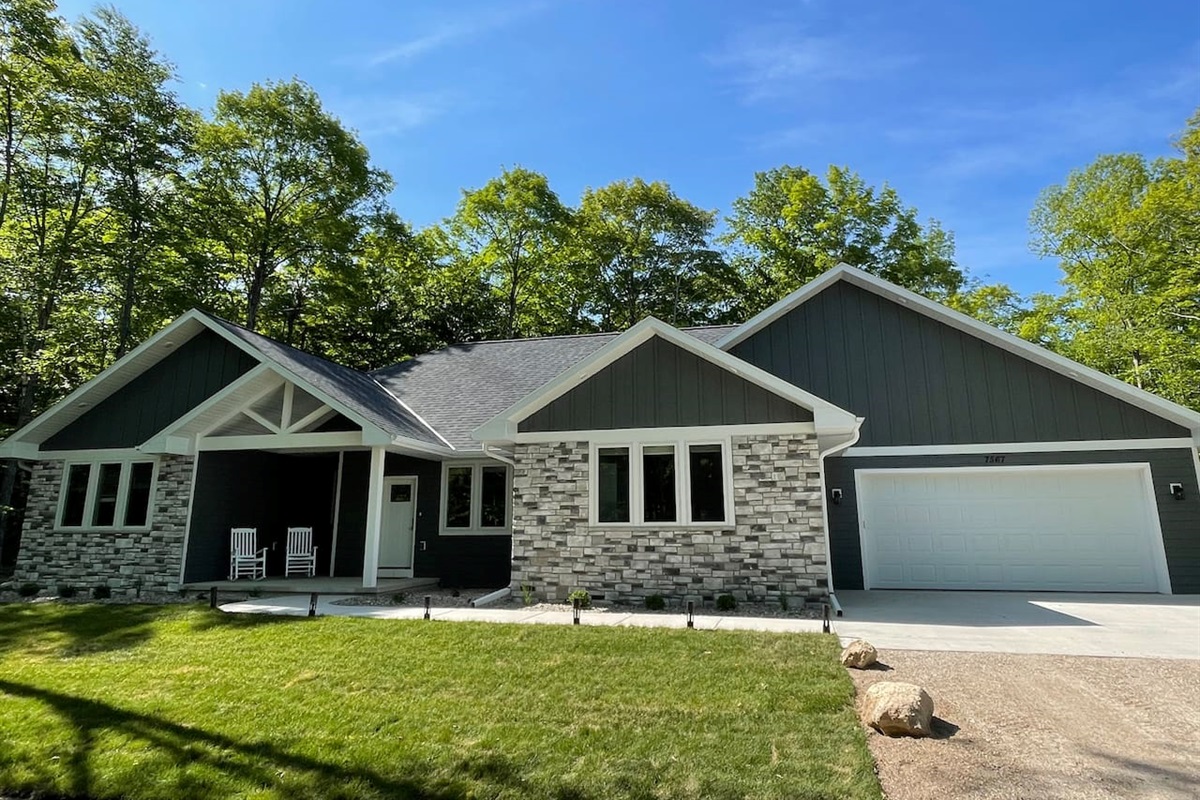 This new home is built for vacationing families where kids can play and adults can relax! Backyard includes spacious patio with grill and hot tub (heated year round) which is nestled in a wooded lot. The fully finished garage/rec room is designed to entertain, including garage door opening to the backyard patio and a wet bar. We also have Starlink internet for your streaming needs.