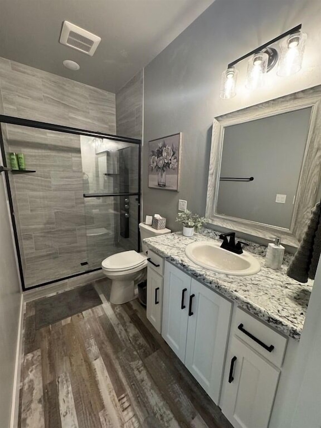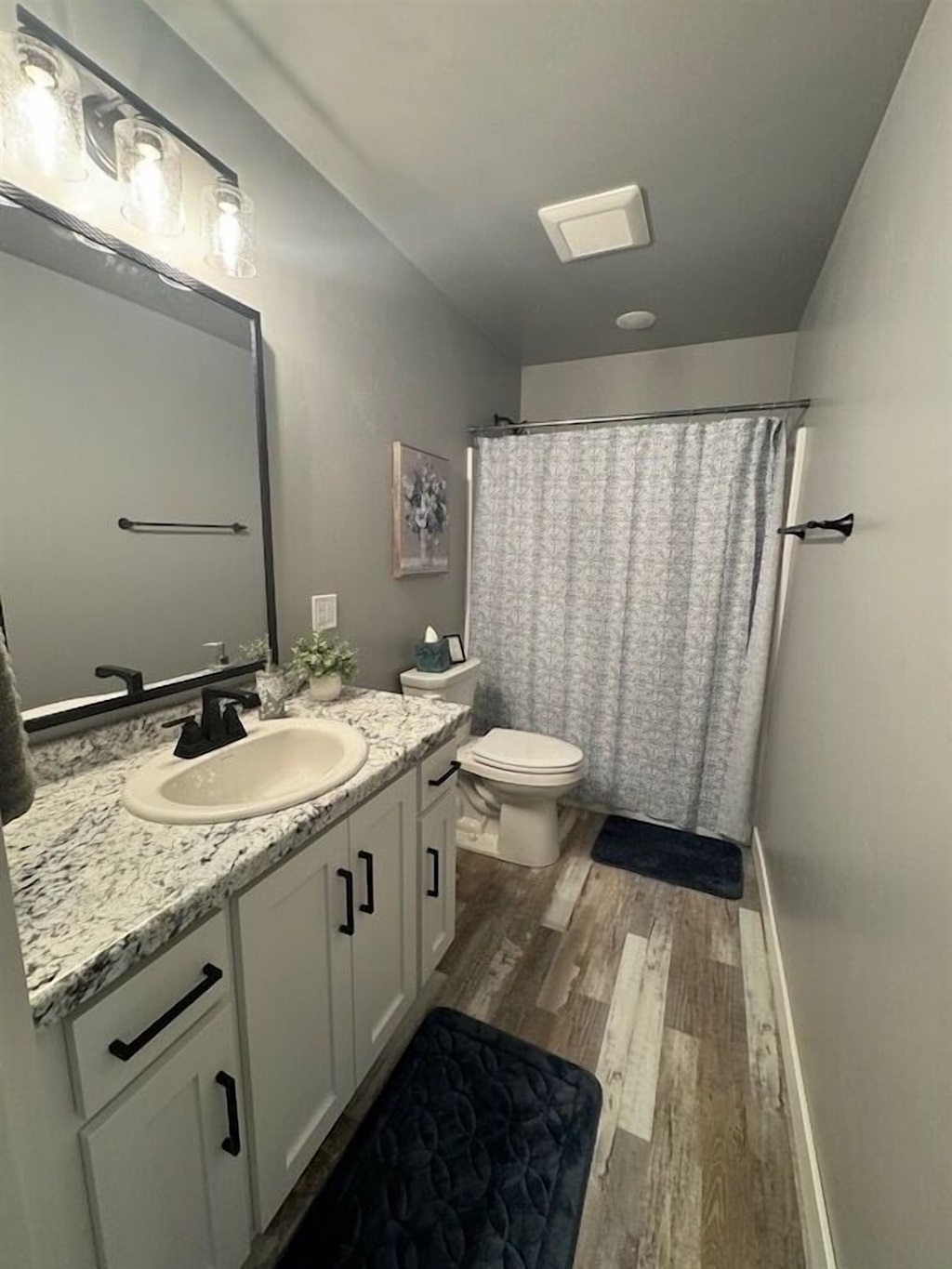 Four bedrooms, all with en-suite bathrooms. Also an additional half bath in the main entertaining area. Two bedrooms have king beds and walk-in tile showers. The other two bedrooms each have queen beds and a set of twin-over-twin bunk beds. The two bathrooms have shower/tub units. Enjoy the games in the garage, the hot tub in the backyard, or the fireplace on those cool nights.